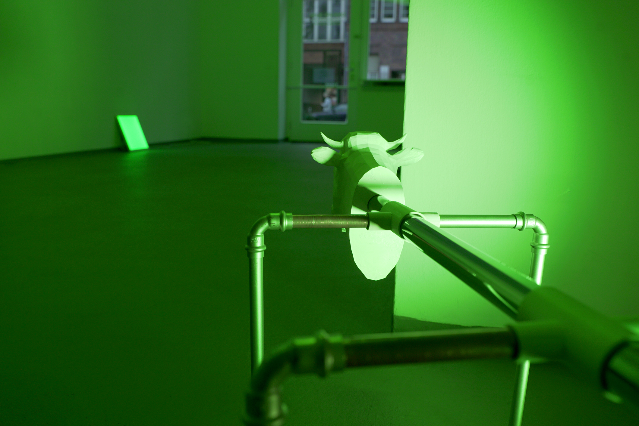 installation, cow milk cups, stainless still hoses, 2021